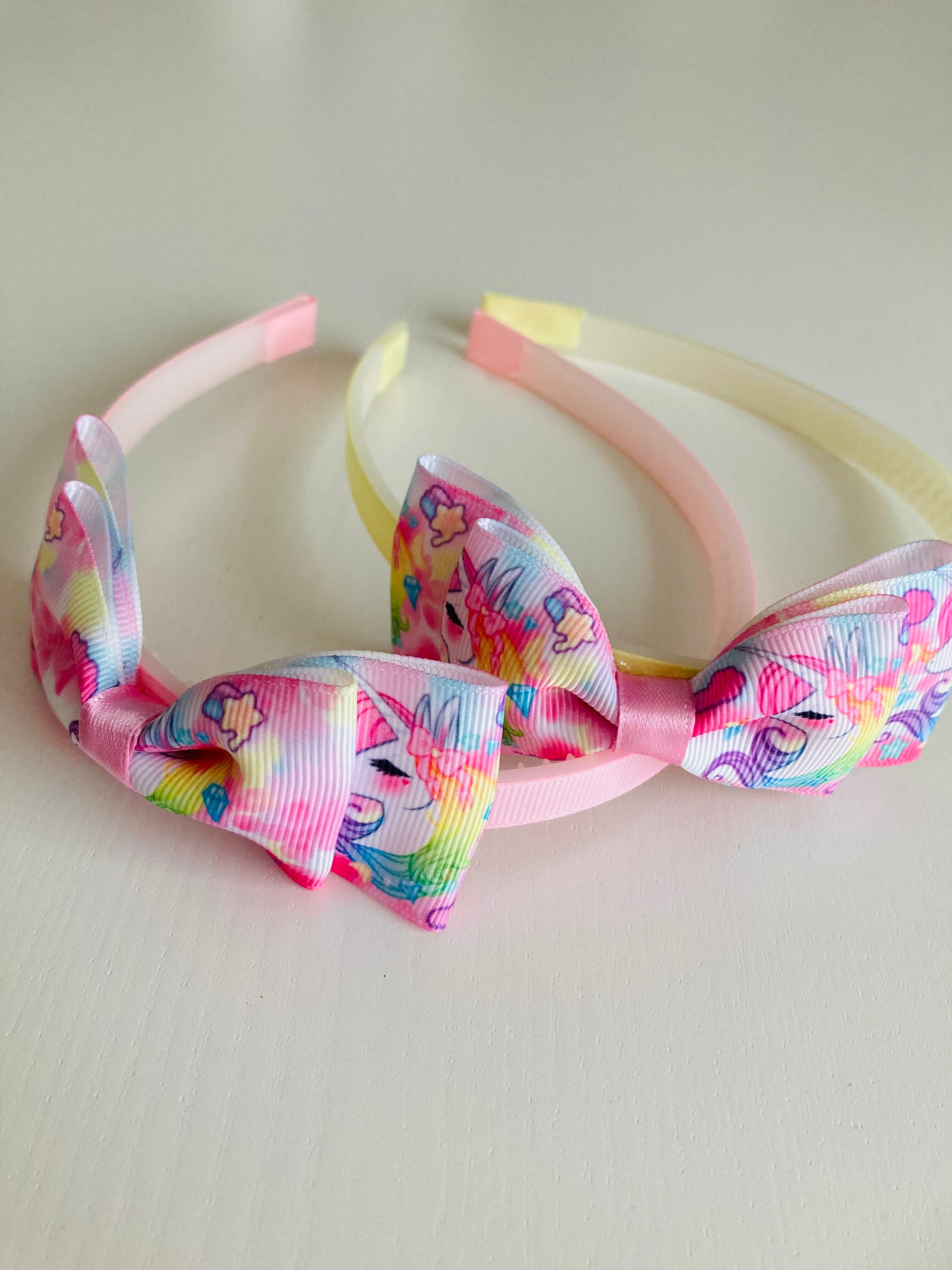 カラフルリボンをカチューシャの土台にし
