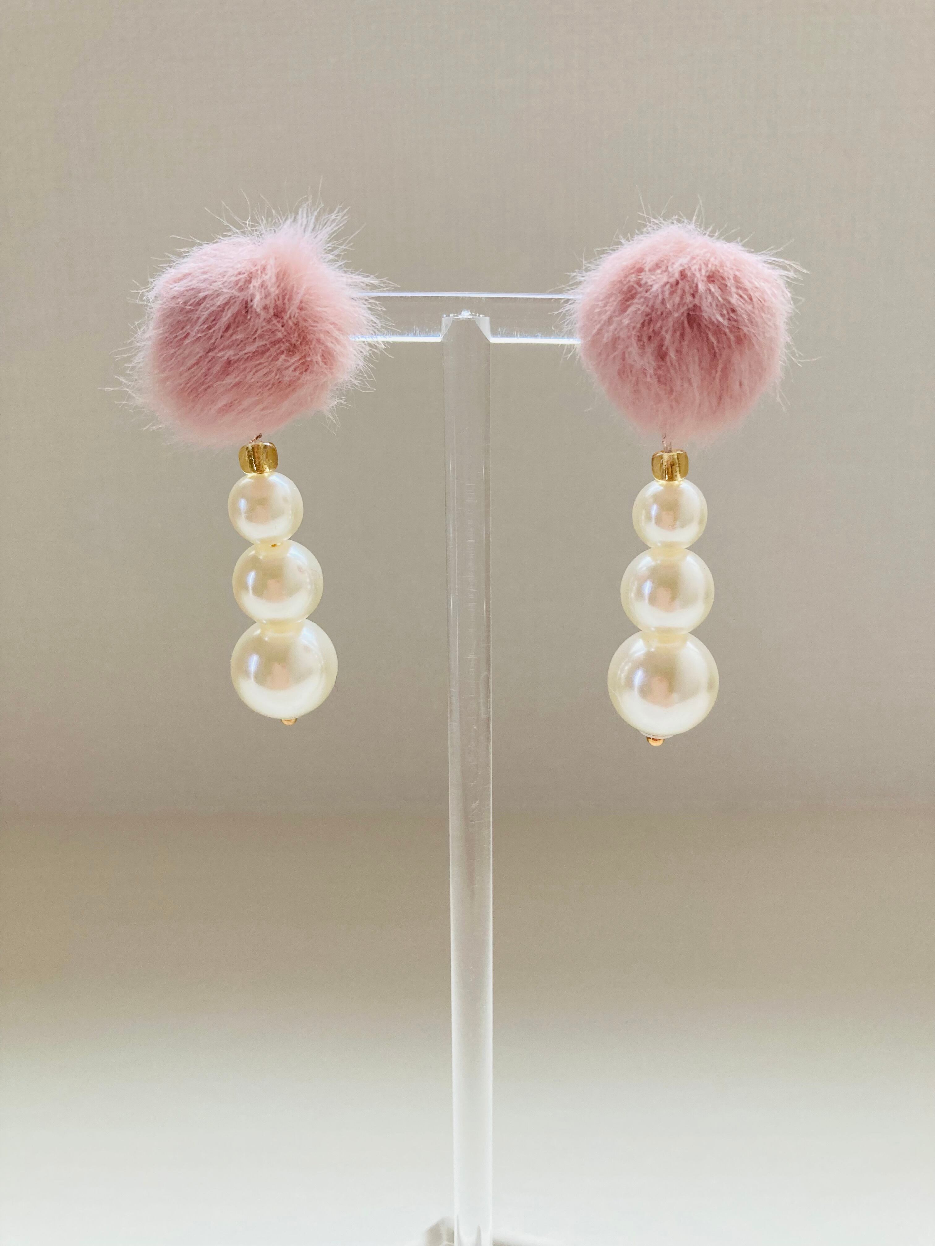 小ぶりのピンクファーとパールがcuteなピアスです。