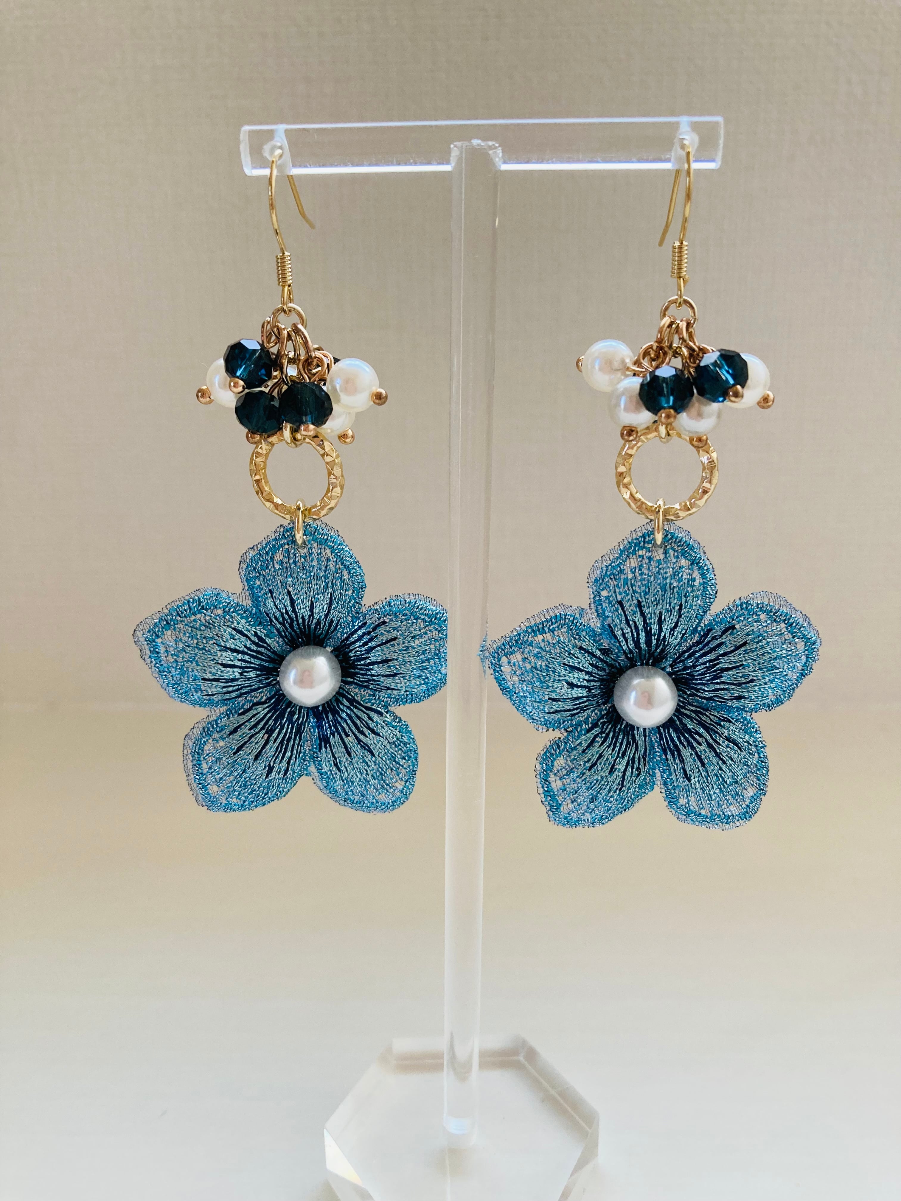渋可愛い色味の刺繍フラワーに