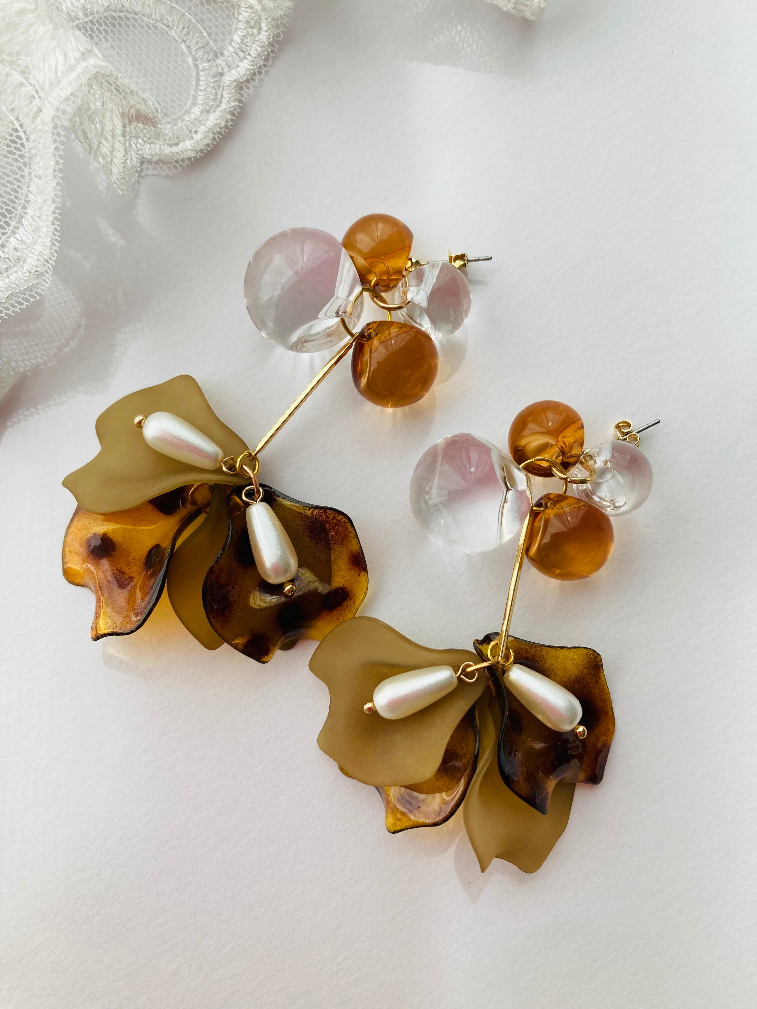 ブラウンレオパード×カーキ色の花びらを合わせました。