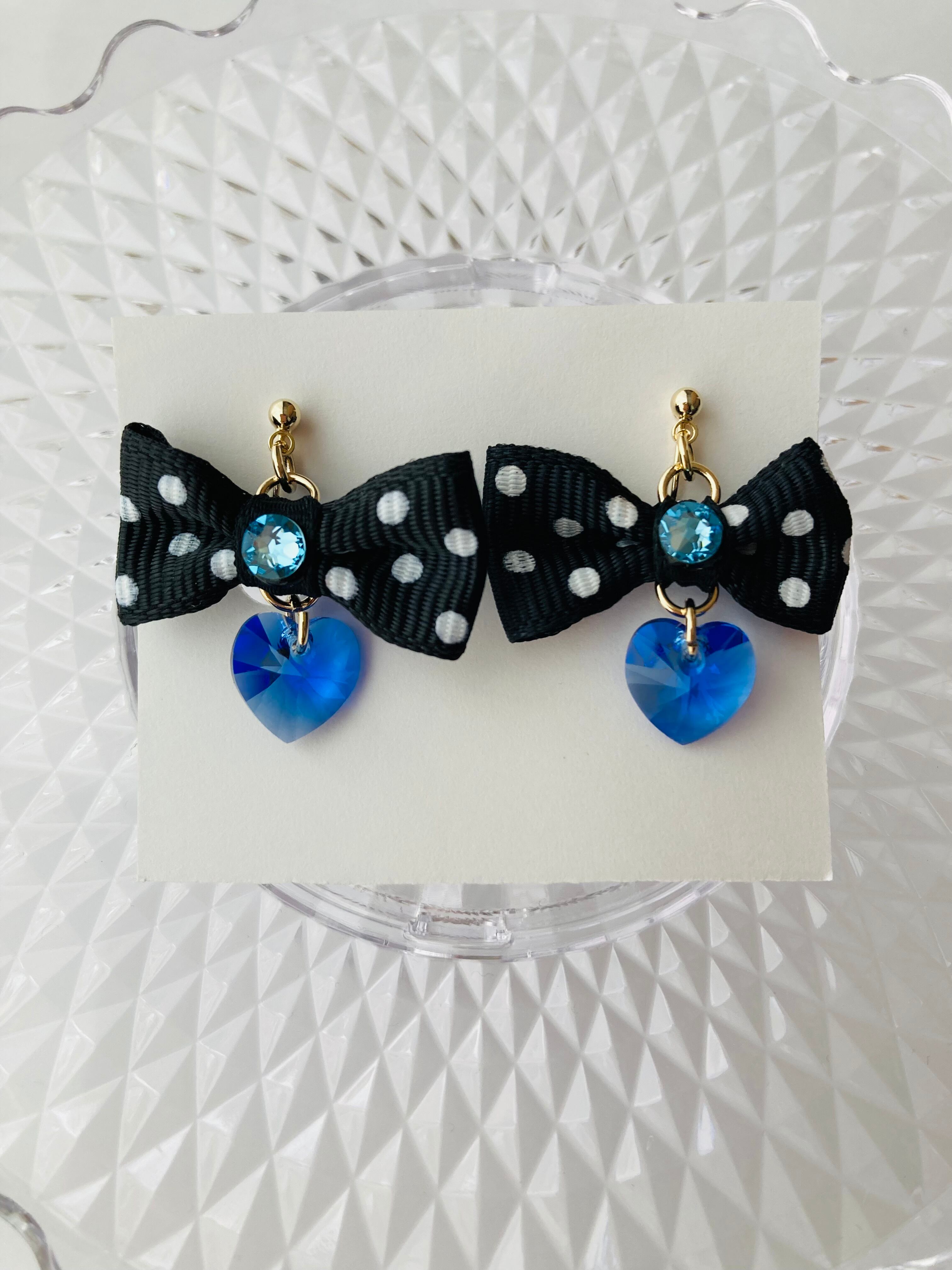 ドットりぼん(ブラック×ブルー)kidsイヤリング